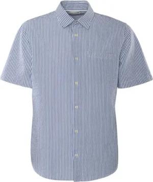 ONEL | Kurzarm Hemd - Seersucker-Gewebe, Legerer Schnitt, Innenliegende Brusttasche, Leichte, Umgentähte 7-Knopfleiste (46, Navy/White)