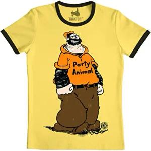 TRAKTOR® Popeye I Bluto I Party Animal | T-Shirt Print | Damen & Herren | kurzärmlig | gelb | Lizenziertes Originaldesign | Größe L
