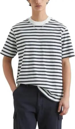 Herren T-Shirt aus Bio-Baumwolle gestreift, Blau (Dark Blue Multi 02), L