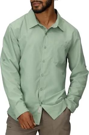Aerobora Langarm-Shirt für Herren, Button-Down-Shirt, leicht, verstaubar, schnelltrocknend, UV-Schutz, Birkenrinde, XX-Large