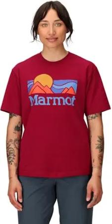 Damen Coastal Kurzarm-T-Shirt – Siebdruckgrafik auf weicher, atmungsaktiver, umweltfreundlicher Baumwoll-Polyester-Mischung, Red Mulberry, Mittel