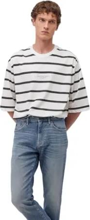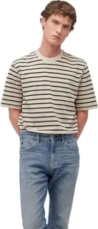 Herren Stripe Tee T-Shirt, Antique White, XL