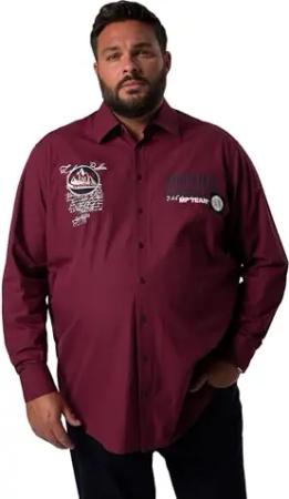 Herren große Größen Übergrößen Menswear L-8XL Hemd, Langarm, Kentkragen, Brustprint, Comfort Fit dunkel weinrot L 832851350-L