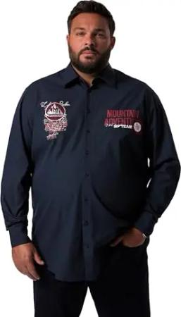 Herren große Größen Übergrößen Menswear L-8XL Hemd, Langarm, Kentkragen, Brustprint, Comfort Fit Navy blau L 832851130-L