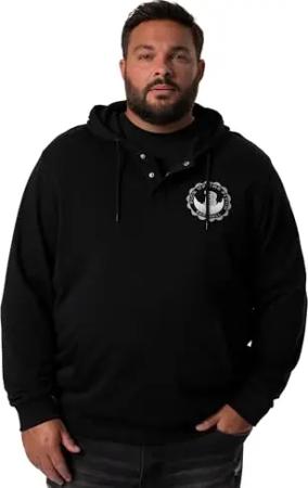 Herren große Größen Übergrößen Menswear L-8XL Hoodie, Sweat, Kapuze, Brustprint schwarz XXL 832065130-XXL