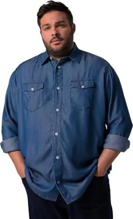 Herren große Größen Übergrößen Menswear L-8XL Jeansoptik-Hemd, Langarm, Kentkragen, Comfort Fit elefantgrau 7XL 832926189-7XL