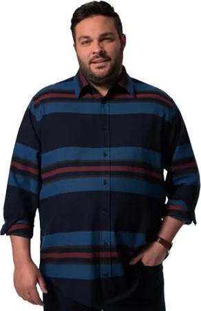 Herren große Größen Übergrößen Menswear L-8XL Streifen-Flanellhemd, Langarm, Kentkragen, Modern Fit Navy blau 4XL 832947130-4XL