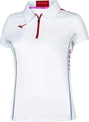Damen Hex Rect Zip W Poloshirt, Weiß/Rot, S EU