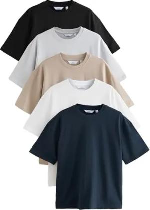 Herren Standard Relaxed Fit Shirts 100% schwere Baumwolle, 5 STK. Black/White/Stone/Navy/Grey L