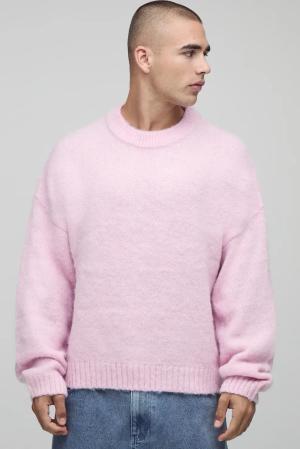 Boxy Fit Brushed Extended Neck Knitted Jumper - Light Pink - M, Light Pink