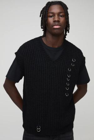 Gerippter Oversize Pullunder Mit Ring-Detail Und V-Ausschnitt - Black - M, Black