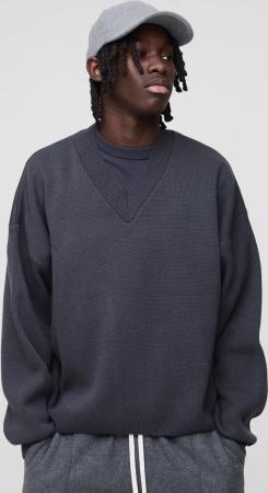 Kastiger Oversize Pullover Mit V-Ausschnitt - Charcoal - M, Charcoal