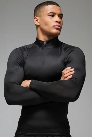 Man Active Lightweight Essentials Raglan Muscle-Fit 1/4 Reißverschluss - Black - S, Black