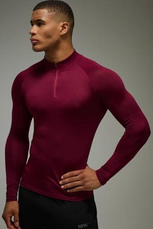 Man Active Lightweight Essentials Raglan Muscle-Fit 1/4 Reißverschluss - Burgundy - Xl, Burgundy