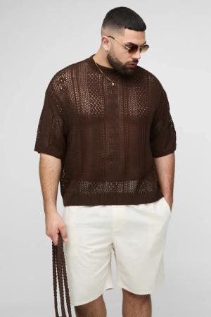Plus Oversize Strick T-Shirt - Chocolate - 2Xl, Chocolate
