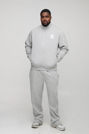 Plus Regular 1/4 Zip Gothic B Embroidered Funnel Neck Jumper & Regular Split Hem Jogger Tracksuit - Grey Marl - 2Xl, Grey Marl