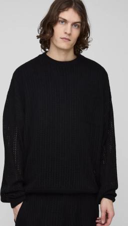 Tall Oversize Rundhals-Pullover - Black - M, Black