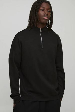 Basic Regular Fit Quarter Zip Funnel Neck Sweatshirt - Schwarz - XL, Schwarz
