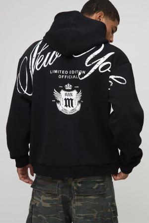 Black Oversized New York Over The Seam Printed Hoodie - Schwarz - S, Schwarz
