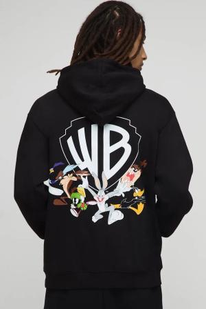Black Oversized Warner Bros Logo License Printed Hoodie - Schwarz - XS, Schwarz