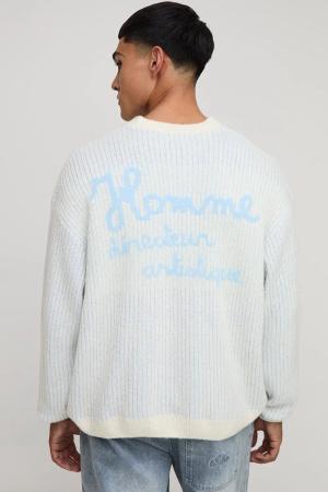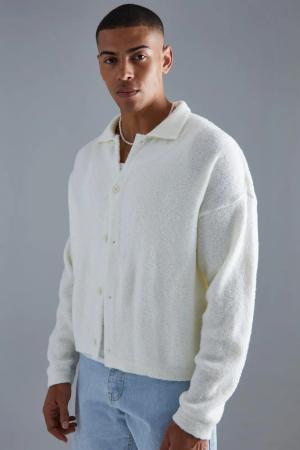Kastiger flauschiger Oversize Man Strickpullover - Ecru - M, Ecru