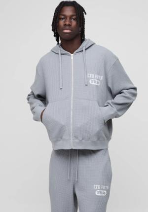 Kastiger Oversize Hoodie in Waffeloptik mit Reißverschluss - Grau - S, Grau