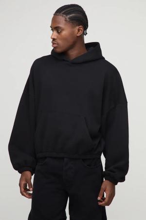 Kastiger Oversize Hoodie mit elastischem Saum und Fledermaus-Ärmeln - Schwarz - XL, Schwarz