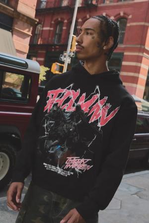 Oversize Hoodie mit Worldwide-Print und Reißverschluss