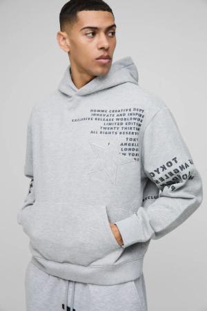 Kastiger Oversize Hoodie mit Stern-Applikation - Grau - L, Grau
