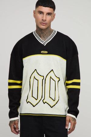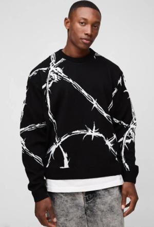 Kastiger Oversize Jacquard-Pullover - Schwarz - XL, Schwarz