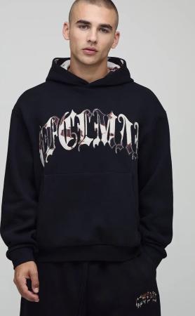 Kastiger Oversize Hoodie mit Official Man Print - Schwarz - S, Schwarz