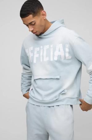 Kastiger Oversize Official Hoodie mit Rissen - Grau - M, Grau