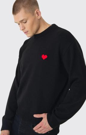 Kastiger Oversize Pullover mit Herzen - Schwarz - XL, Schwarz
