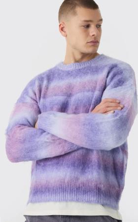 Kastiger Oversize Pullover mit Streifen - Lila - XL, Lila