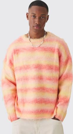 Oversized Boxy Fit Ombre Stripe Knitted Zip Through Hoodie - Orange - S, Orange