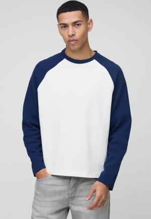 Langärmliges kastiges Oversize T-Shirt in Waffeloptik - Blau - S, Blau