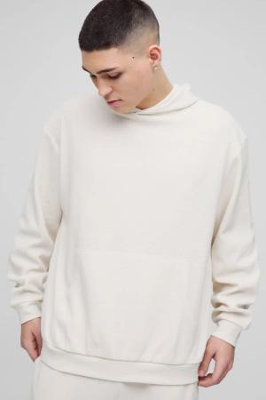 Oversize Hoodie in Waffeloptik mit Man-Stickerei - Ecru - S, Ecru