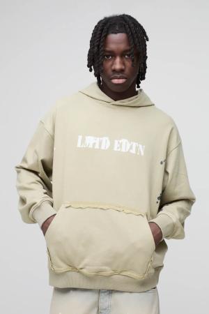 Oversize Hoodie mit Limited Edition Print und Farbspritzern - Khaki - S, Khaki