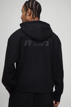 Kastiger Oversize Hoodie mit Reißverschluss und Official Man Print - Schwarz - S, Schwarz