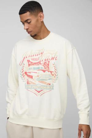 Oversize Sweatshirt mit lizenziertem Johnny Money Print - Ecru - S, Ecru
