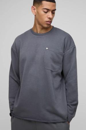 Oversize Sweatshirt mit rohem Saum - Grau - S, Grau