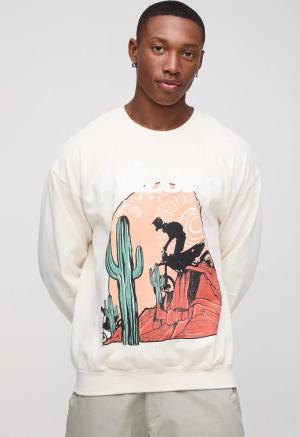 Oversize Sweatshirt mit Western Arizona Print - Ecru - S, Ecru