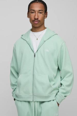 Oversized Boxy Country Club Heavyweight Rib Zip Through Hoodie - Grün - L, Grün