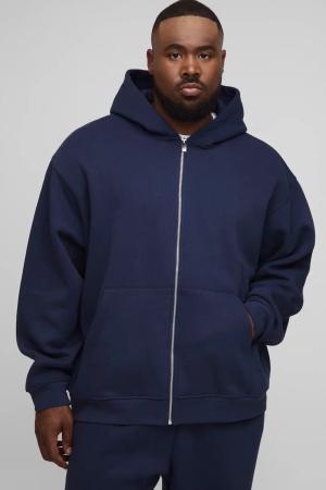 Plus Basic Oversize Hoodie mit Reißverschluss - Blau - 4XL, Blau