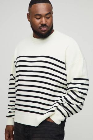 Plus gestreifter Oversize Rundhals-Pullover - Ecru - 2XL, Ecru