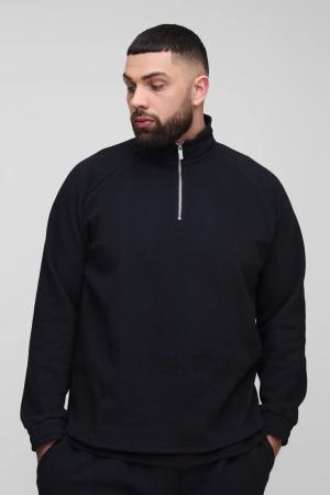 Plus Jacquard Raglan Sweatshirt mit 1/4 Reißverschluss