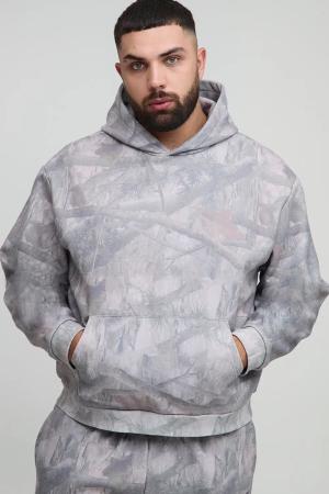 Plus kastiger bestickter Camouflage Oversize Hoodie - Tarnfarben - 2XL, Tarnfarben