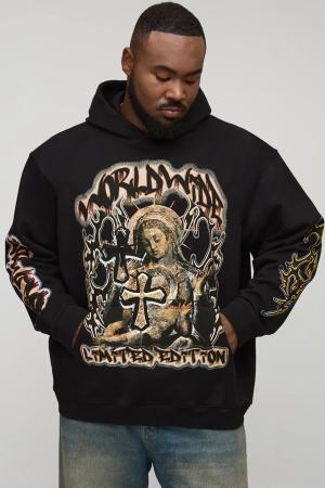 Plus Oversized Gothic Renaissance Print Hoodie - Schwarz - 5XL, Schwarz