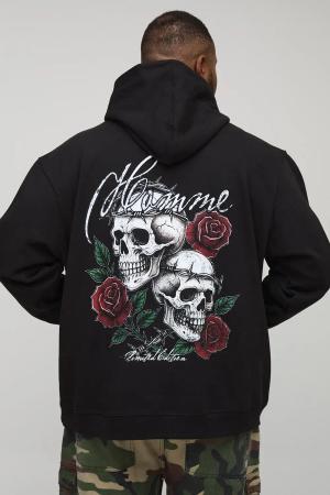 Plus Oversized Gothic Skull Floral Print Hoodie - Schwarz - 4XL, Schwarz
