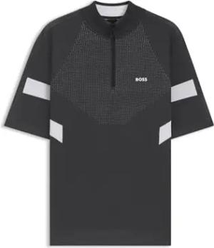 Herren K Tennis Retro QZ Kurzärmeliger Pullover aus Baumwolle mit Jacquard-Struktur Dunkelgrau M